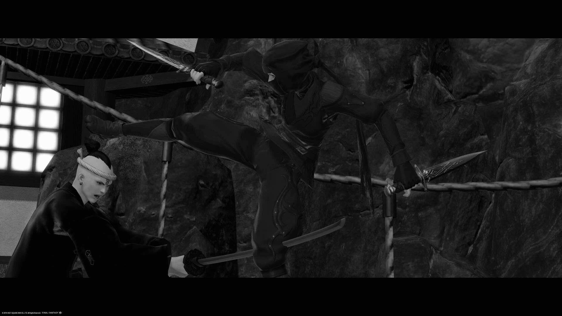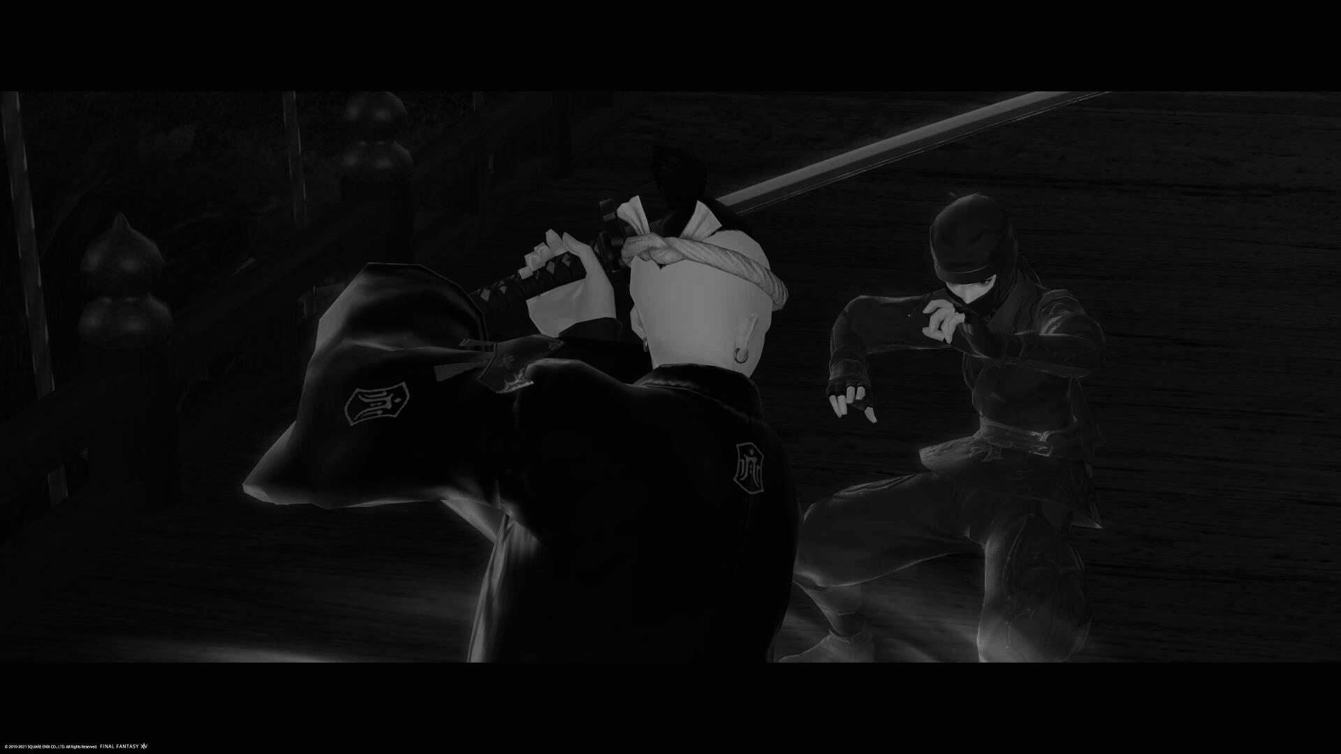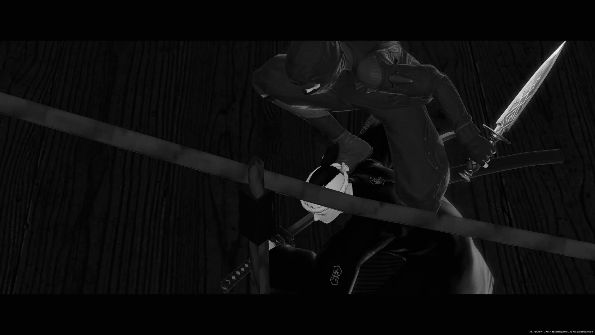 Now within reach of Hiro while in the cover of smoke, she struck with her left blade. Though the Jinkyko ninja had highly underestimated Hiros awareness. Spinning around with his katana unsheathed Hiro deflected the sneak assault. The sounds of steel clashing filled the ward like echos of war.-[Jinkyko Kunoichi]: ”For...the Jinkyko!“-[Clashing Weapons]: ”Shink....shink. ..“