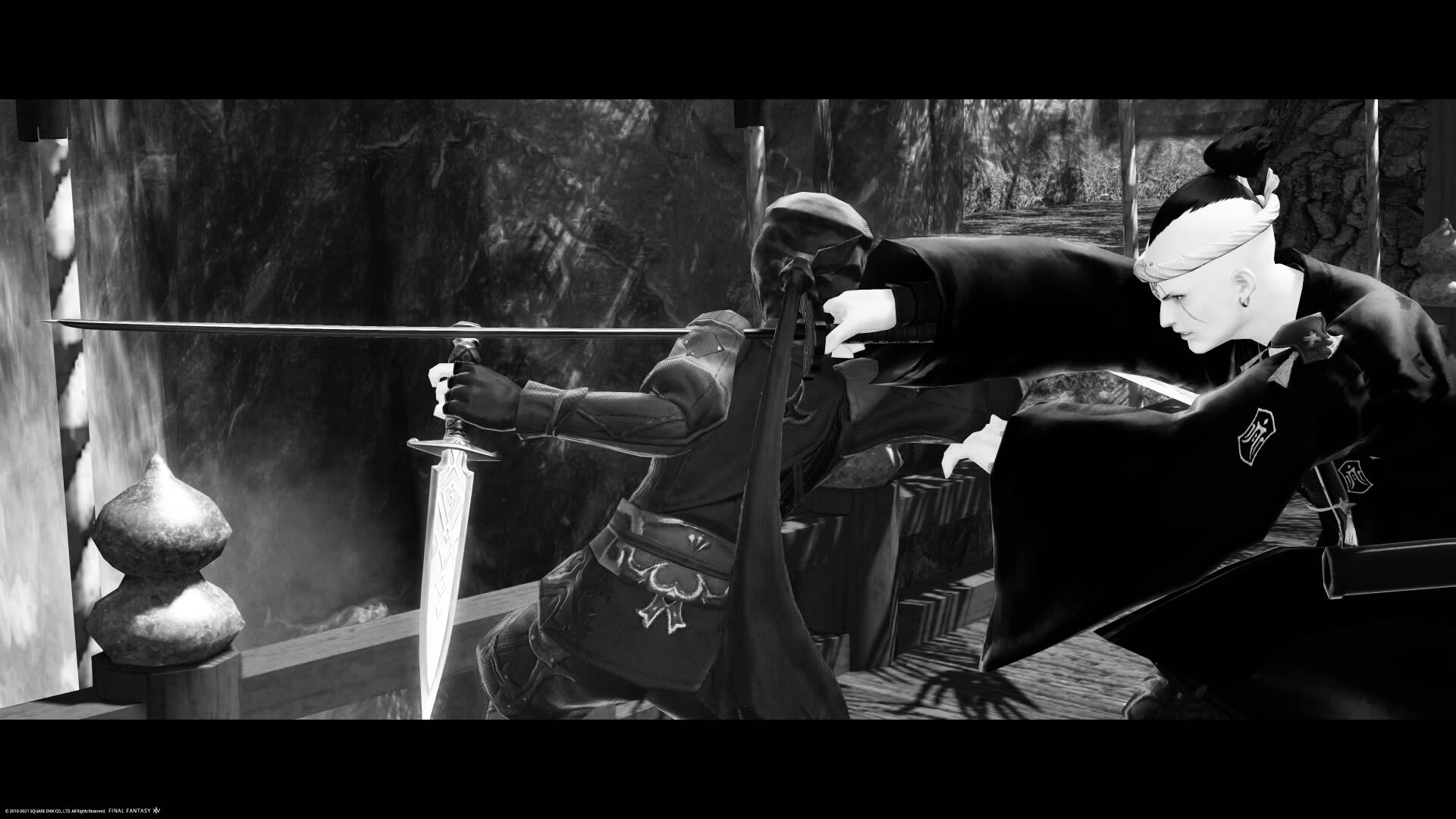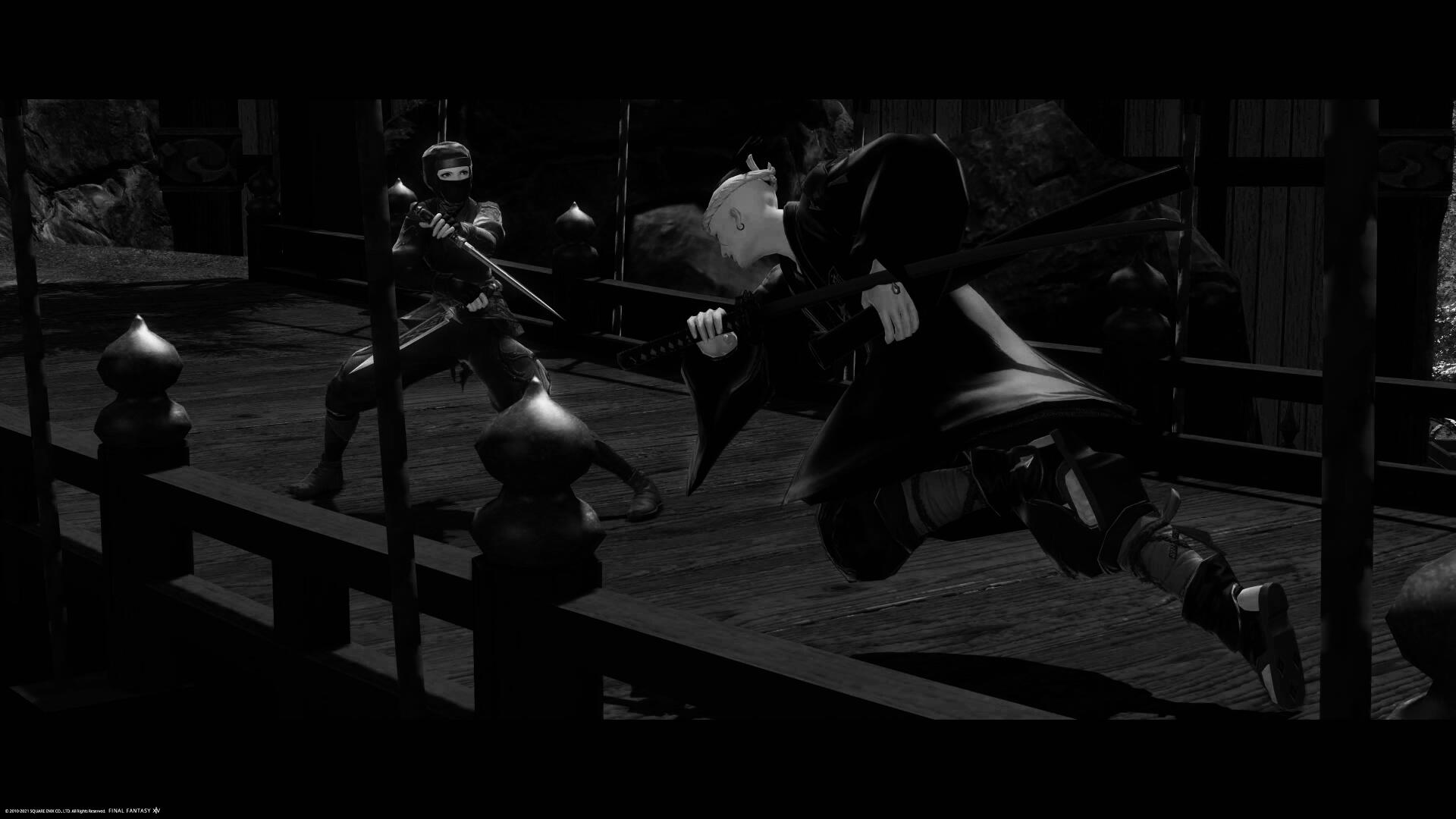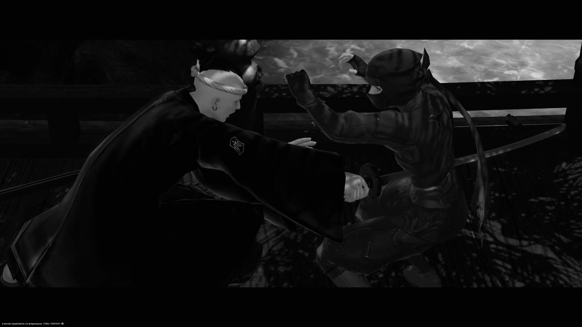 Now within reach of Hiro while in the cover of smoke, she struck with her left blade. Though the Jinkyko ninja had highly underestimated Hiros awareness. Spinning around with his katana unsheathed Hiro deflected the sneak assault. The sounds of steel clashing filled the ward like echos of war.-[Jinkyko Kunoichi]: ”For...the Jinkyko!“-[Clashing Weapons]: ”Shink....shink. ..“